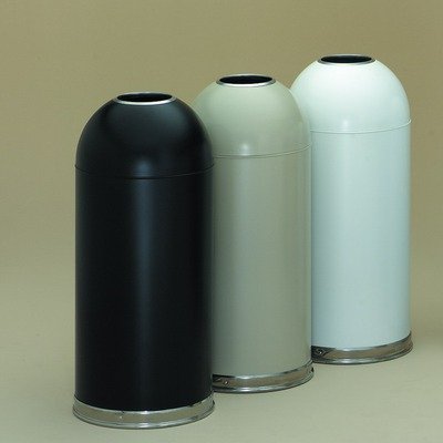 Standard open dome top receptacle with galvanized liner. A classic waste can fit for any environment. Features a strong steel shell. Rolled-under stainless steel bottom offers floor protection. Open-top receptacle offers touchless, sanitary waste disposal. ADA and OSHA compliant. For indoor use. Black color. Measures 15" diameter by 35" height.